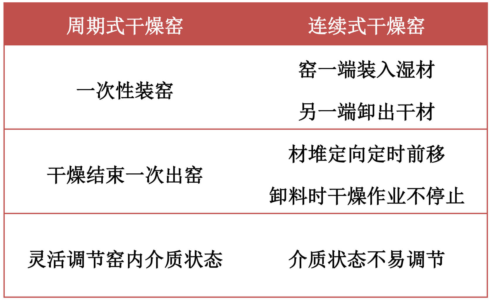 干燥窯按作業方式可分為周期性干燥窯和連續式干燥窯,干燥窯按氣流循環方式可分為自然循環干燥窯和強制循環干燥窯。現在生產中常用的是周期強制循環干燥方式。